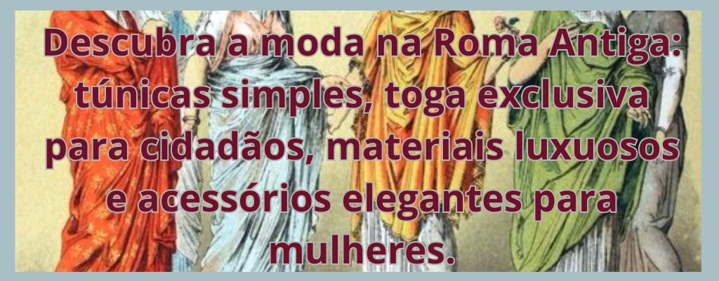Ler maisDescubra a moda na Roma Antiga: túnicas simples, toga exclusiva para cidadãos, materiais luxuosos e acessórios elegantes para mulheres.